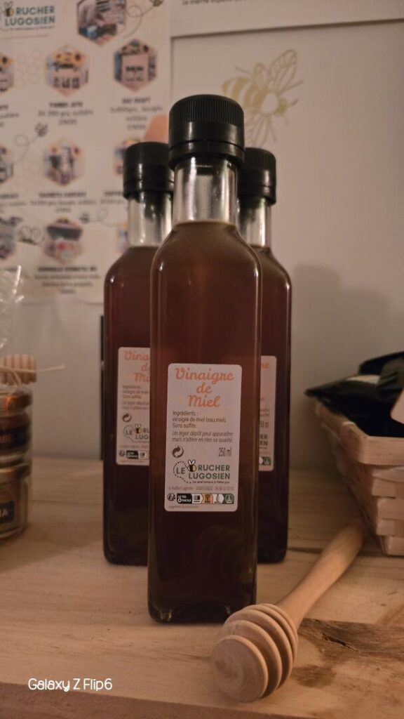 Parmi les produits issus directement de la production artisanale, vous retrouverez notamment : vinaigre au miel, nougat, pain d’épices et chocolat au miel.